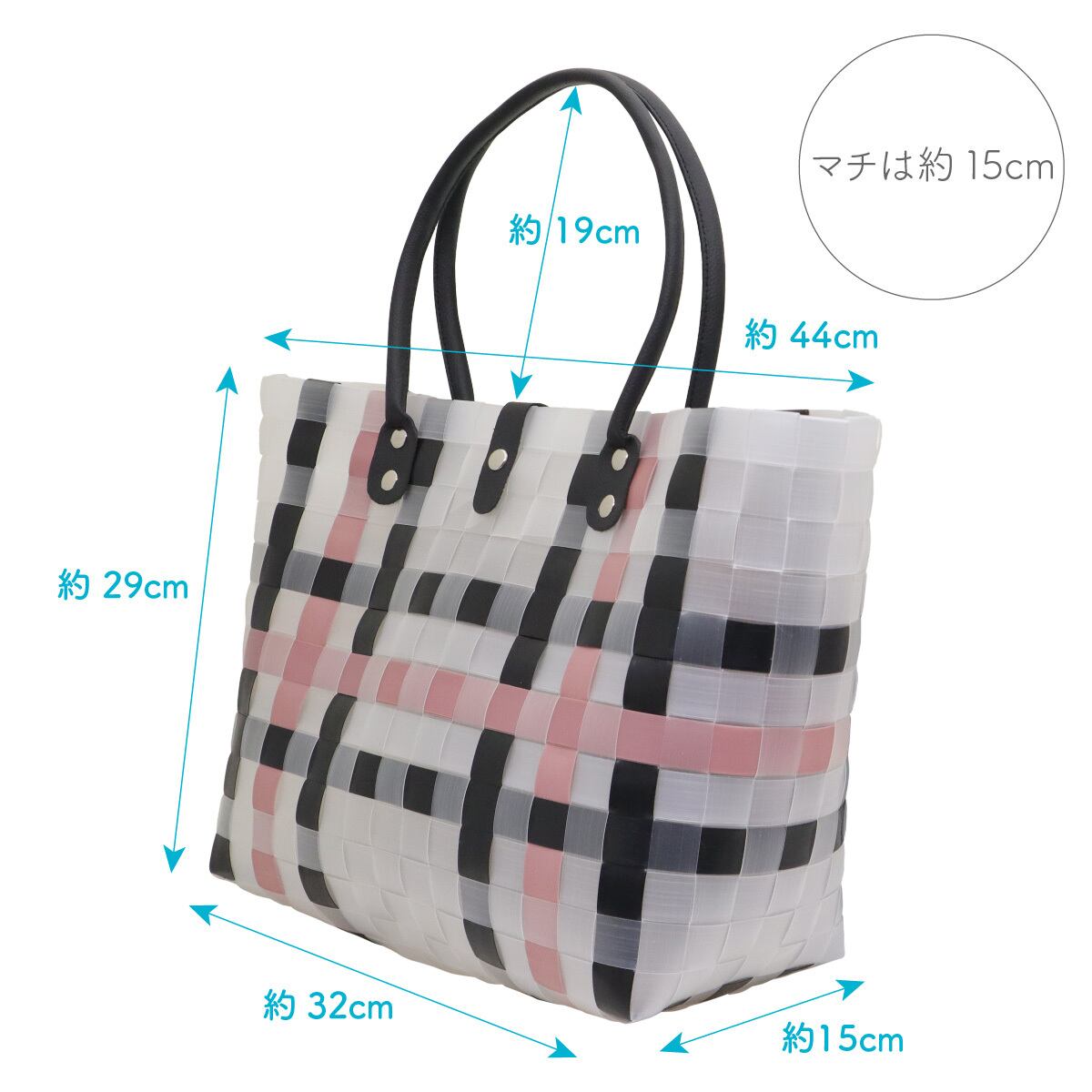 サイズ:約 幅上部 44 × 高さ 29 × 幅下部 32 × マチ 15(cm)
