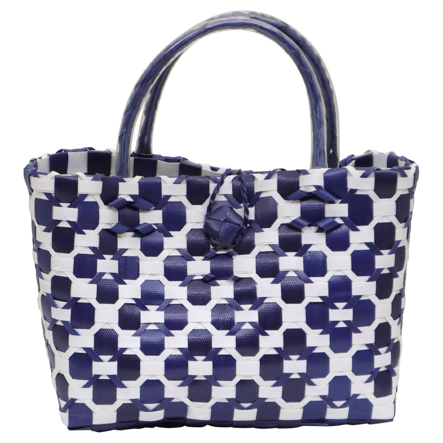 商品名:プラカゴ フラワー ネイビー×ホワイト 手持ち